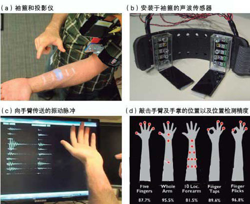 Harrison等通過關注聲波脈沖的波形及強度因敲擊手臂及手掌的部位不同而發生變化這一點,還開發出了根據該波形信息等通知敲擊的是手臂哪一部位的軟件。“如果是手臂及手掌的固定部位,20次操作中,錯誤不到1次。其錯誤率與iPhone的觸摸面板相當”(Harrison)。