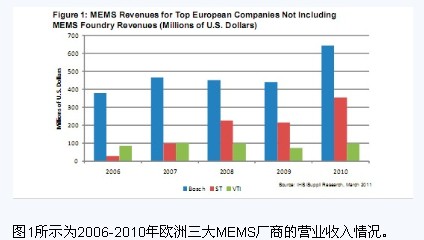 據IHS iSuppli公司的研究,2010年微機電系統(MEMS)產業蓬勃發展,總體增長了18%,而歐洲三家廠商更是取得了上乘表現。