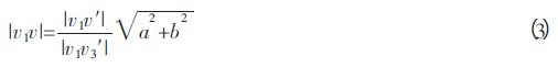 同時初始設置時可以根據虛擬觸摸屏的長寬和每個棋盤格在圖像上的投影確定攝像頭拍攝的每個棋盤格平行光的斜率。放大圖5 中的棋盤格s,得到圖6。假設攝像頭c1以斜率k平行拍攝由頂點v1、v2、v3、v4組成的棋盤格s,其邊(v4,v3)的長度為a,在圖像平面上的投影(v3,v5)的長度為a′,其邊(v1,v4)的長度為b,在圖像平面的投影(v1,v5)的長度為b′。已知虛擬觸摸屏的長寬,每個棋盤格的長a 和寬b 分別為其1/n,a′、b′可從拍攝的圖像上獲得,于是從攝像頭拍攝該棋盤格的平行光的斜率k 可由下式獲得:
