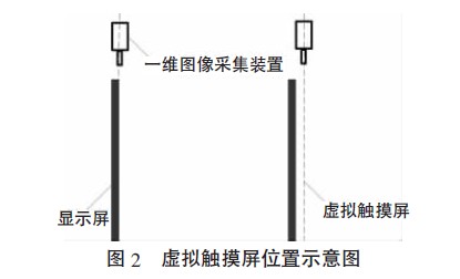 設計了一種虛擬觸摸屏系統,其特色在于由圖像采集裝置獲取的一維圖像數據來確立用戶手指觸摸二維虛擬觸摸屏上的位置坐標。前提是一維圖像采集裝置的安裝位置,它從根本上解決了大屏幕觸摸屏中人體遮擋手指無法識別的問題,且其進行的是一維數據的處理,相比于二維圖像處理算法更加簡單。