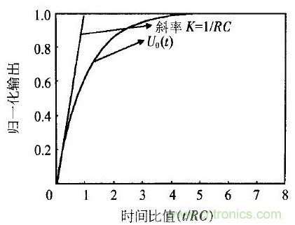 基于上述思想,若已知輸入、輸出信號, 可通過曲線擬合及線性回歸法得出RC。對式(3) 進行擬合,在擬合過程中, 加入一定的白噪聲。若R = 1000 Ω,電容C = 50 p F ,則擬合曲線如圖4 所示