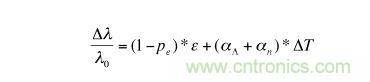 應變以及溫度的改變會同時影響光纖布拉格光柵有效的光折射率n以及光柵周期Λ,造成的結果就是光柵反射光波波長的改變。光纖布拉格光柵反射波長隨應變和溫度的變化可以近似地用方程(2)中的關系來表示:
