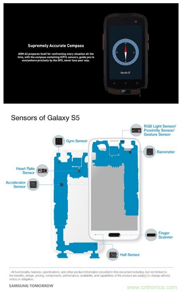 封裝于三星S5主板的常見類別傳感器