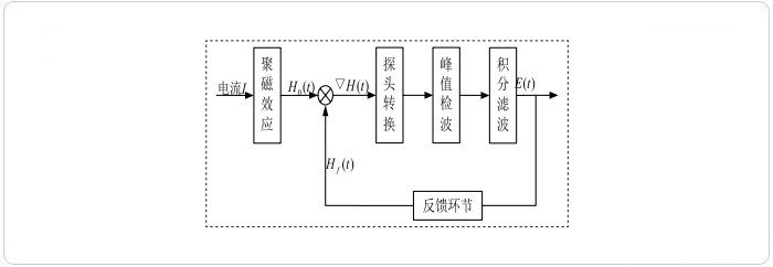 因為磁通門傳感器是利用被測磁場中高導磁率磁芯在交變磁場的飽和激勵下,其磁感應強度與磁場強度的非線性關系來測量弱磁場的。這種物理現象對被測環境磁場來說好像是一道“門”,通過這道“門”,相應的磁通量即被調制,并產生感應電動勢。利用這種現象來測量電流所產生的磁場,從而間接的達到測量電流的目的。