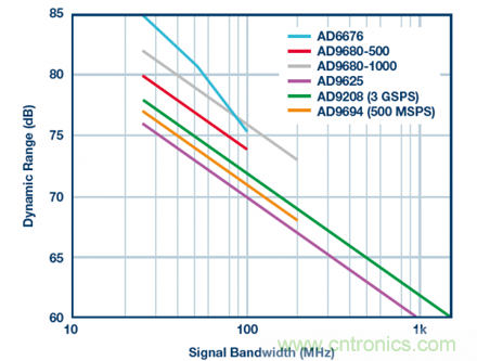 圖5.不同ADC的SNR與信號帶寬的關系