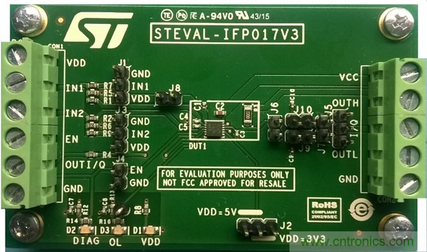 圖5:STEVAL-IFP017V3演示板,用于測(cè)試L6362A的阻容和電感負(fù)載驅(qū)動(dòng)能力