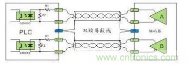 主要用于硬件高速計數器(HHSC)的輸入使用,接口電壓為5VDC,在應用上為確保高速及高噪音抗性通常采用雙線驅動方式(Line-Drive)。如果工作頻率不高與噪音低也可以采用5VDC的單端SINK或者SRCE接法,串聯一個限流電阻轉換成24VDC的單端SINK或者SRCE接法。