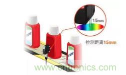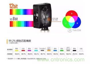 2、用于識別和比較物體表面顏色值(RGB)的顏色傳感器。這類傳感器一般采用通過RGB(紅色,綠色,和藍色)LED光源和運算檢測物體反射光中R,G,B波長比率,來判斷檢測到的顏色是否和設定的一致。類似于彩色相機。